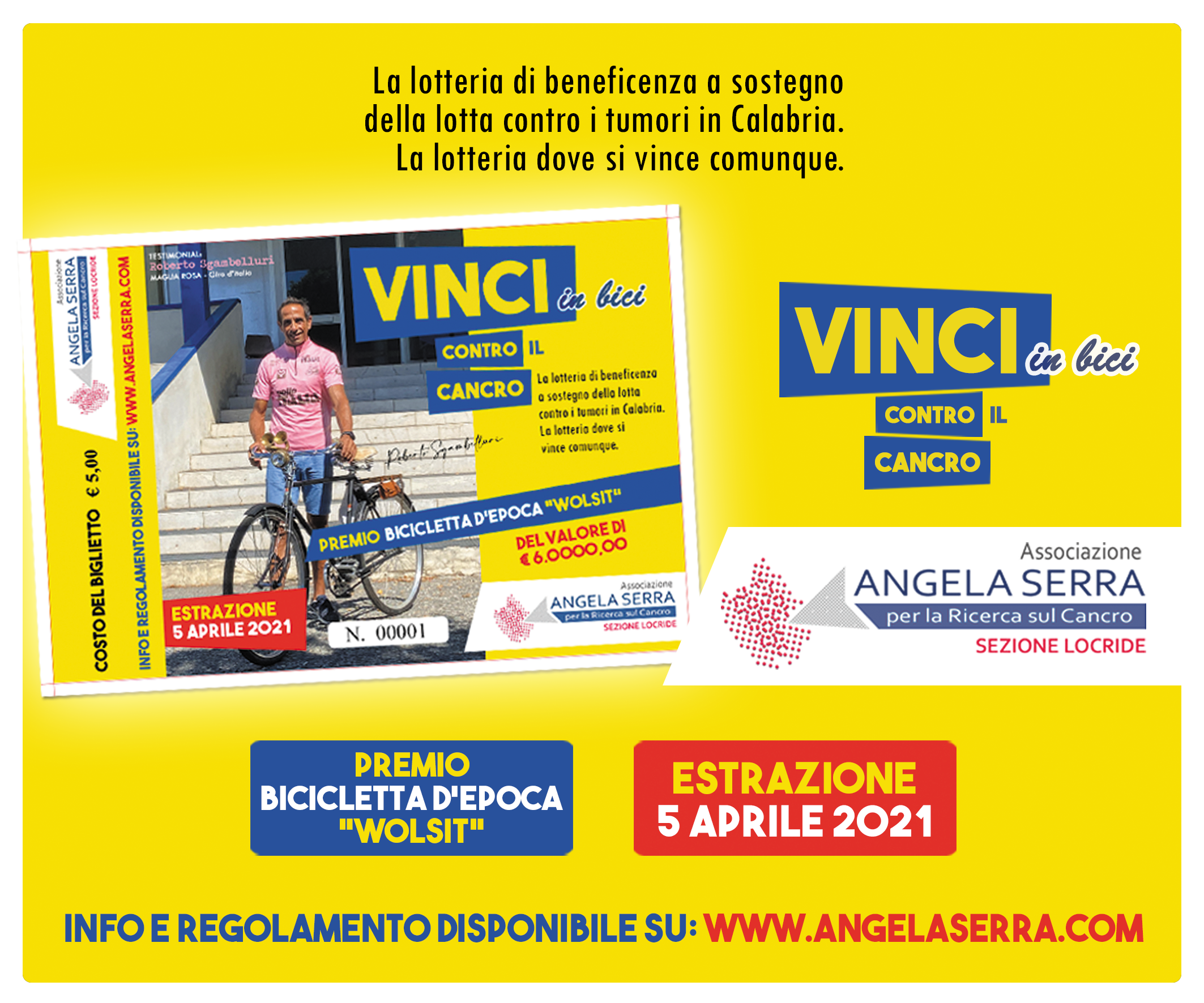 La lotteria viene organizzata al fine di reperire fondi finalizzati alla realizzazione di progetti assistenziali a favore di pazienti oncologici del territorio della Locride a cura dell’Associazione Angela Serra per la ricerca sul cancro ODV promotrice dalla lotteria stessa.