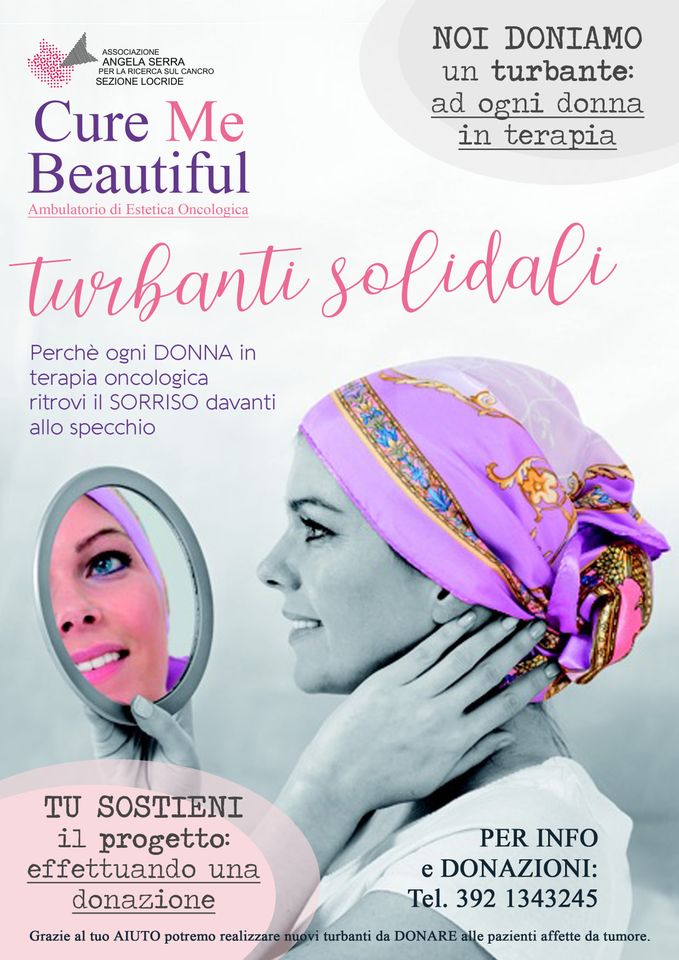 Siamo lieti di annunciare a tutte le donne della Locride che la nostra associazione DONA ad ogni paziente in terapia oncologica un turbante da poter scegliere all’interno del nostro catalogo!