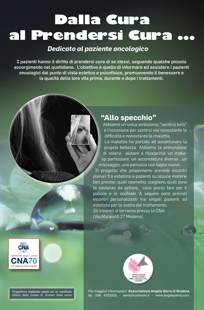 I pazienti hanno il diritto di prendersi cura dise stessi, seguendo qualche piccolo accorgimento nel quotidiano. L’obiettivo è quello di informare ed assistere i pazienti oncologici dalpunto di vista estetico e psicofisico, promuovendo il benessere e la qualità della loro vita prima, durante e dopo i trattamenti