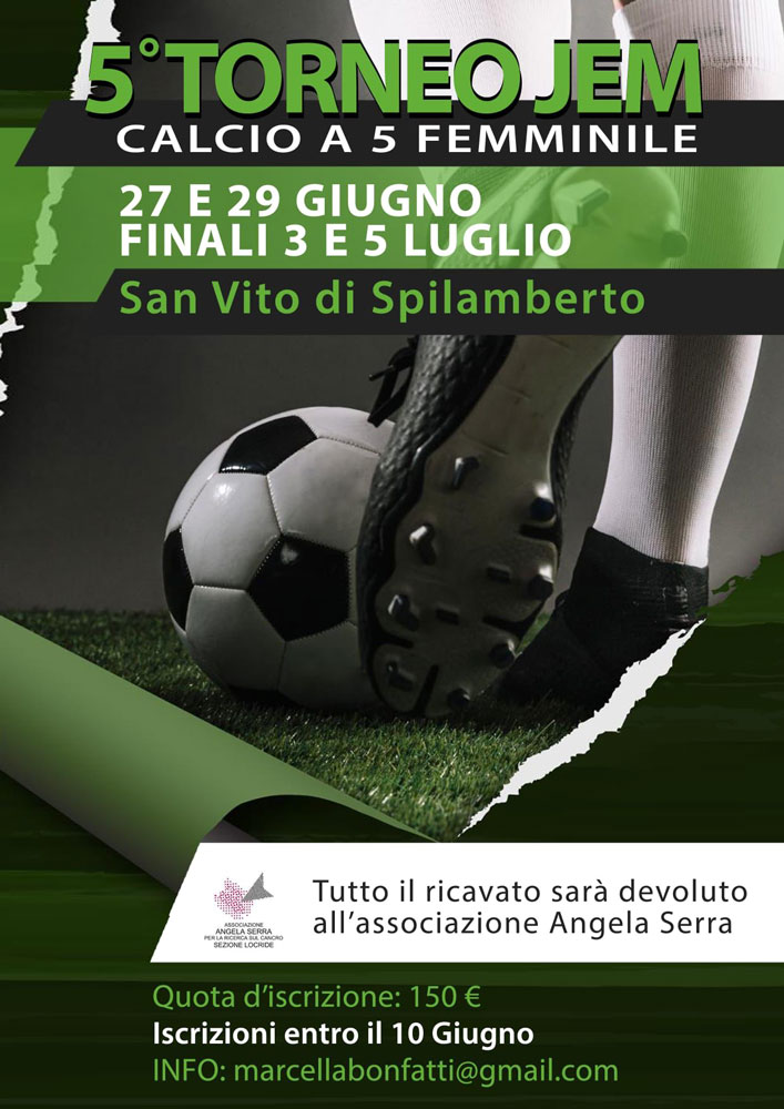 5° torneo di calcio a 5 femminile “Jem”, il cui ricavato sarà devoluto all'associazione Angela Serra di Modena per la ricerca sul cancro