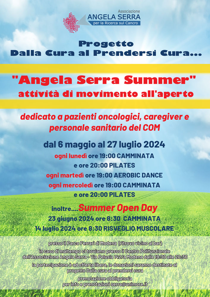 Dal 6 Maggio al 27 Luglio 2024 organizziamo una serie di attività all'aperto, dedicate ai pazienti oncologici, ai caregiver e al personale sanitario del COM.