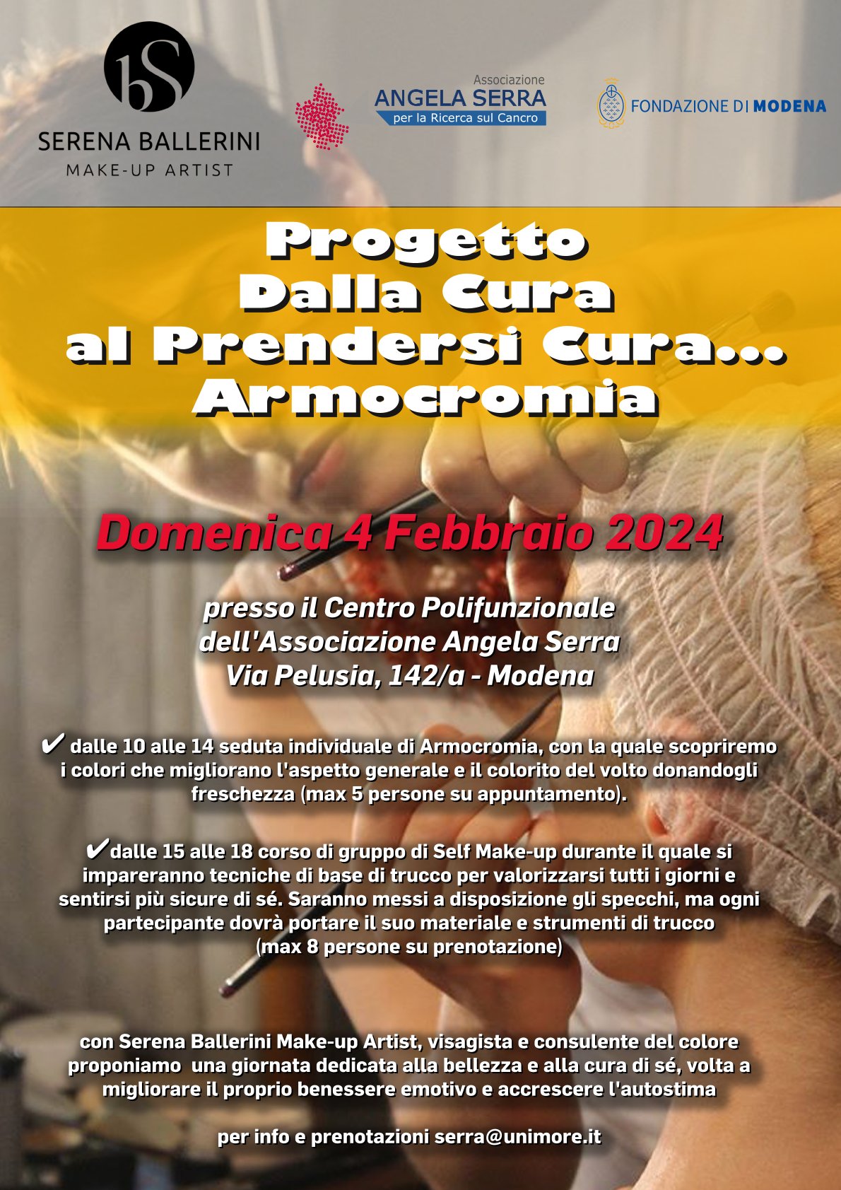 Incontri individuali di armocromia e di gruppo di self-make durante i quali si impareranno nuove tecniche per migliorare e valorizzare il proprio aspetto tutti i giorni