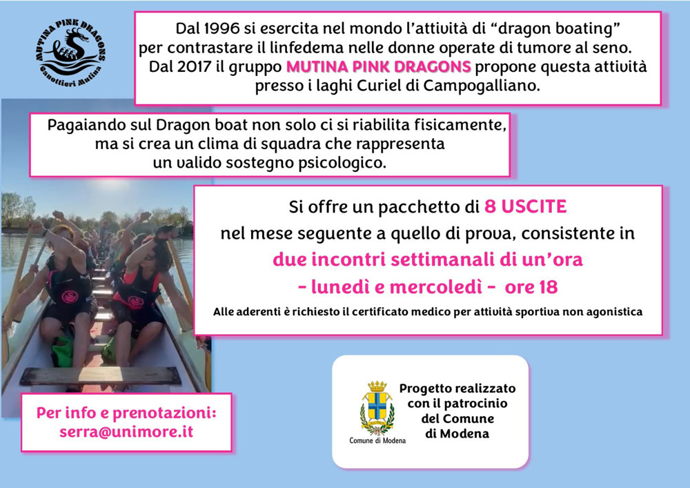 L'attività di "dragon boating" è una disciplina sportiva idonea al recupero psico-fisico dopo un intervento per tumore al seno e grazie alle sue peculiarità aiuta nel contrastare il linfedema.