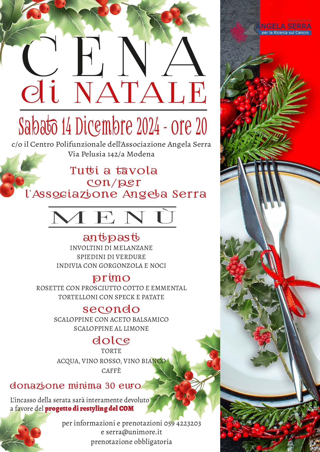 Tutti a tavola per il pranzo di Natale con l'associazione Angela Serra; l'incasso della serata sarà interamente devoluto a favore del progetto di restyling del COM
