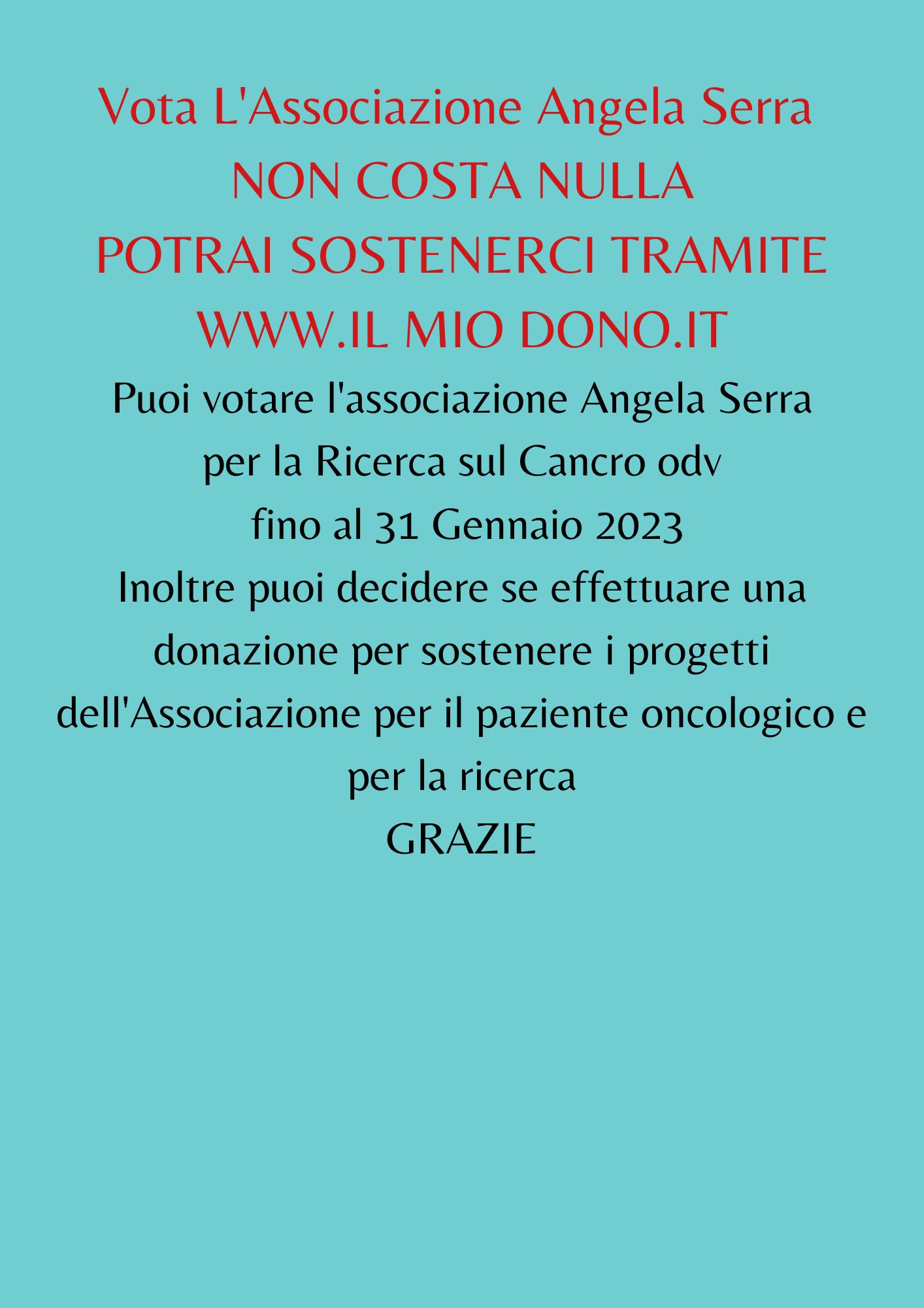 Puoi votare l'associazione Angela Serra e decidere di sostenere i nostri progetti e le nostre iniziative attraverso l'app. del Mio Dono, una nuova rete di solidarietà alla quale puoi collegarti direttamente da qui