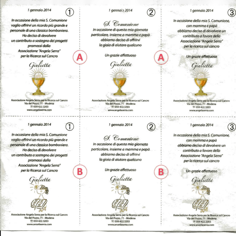 Offerta pergamena standard 1 euro cad. più donazione;